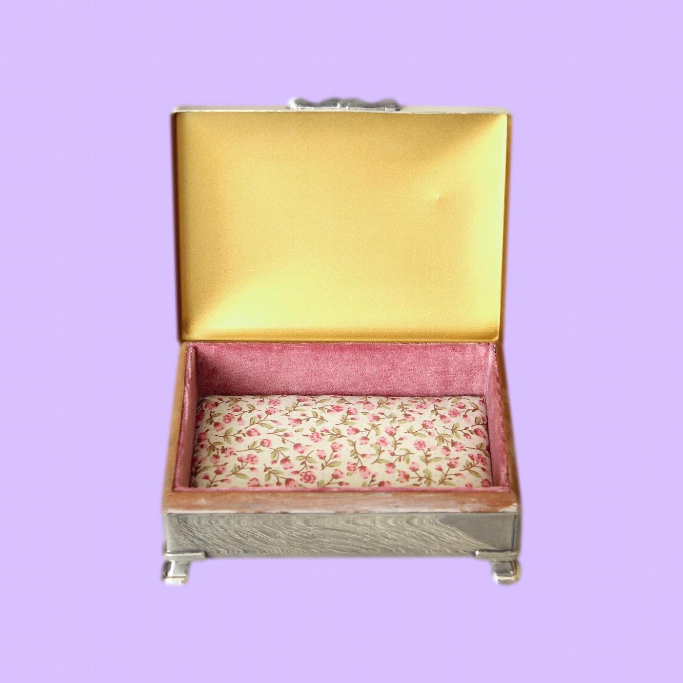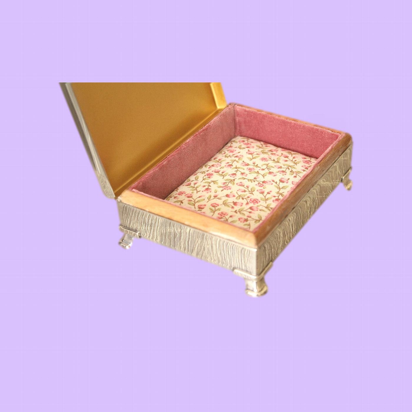 This is a beautiful small Art Deco box which has recently been converted into a jewellery box. It dates to the 1930s and is made of Electroplated Nickel Silver. It has a gorgeous glossy high polished finish and the appearance of solid silver.