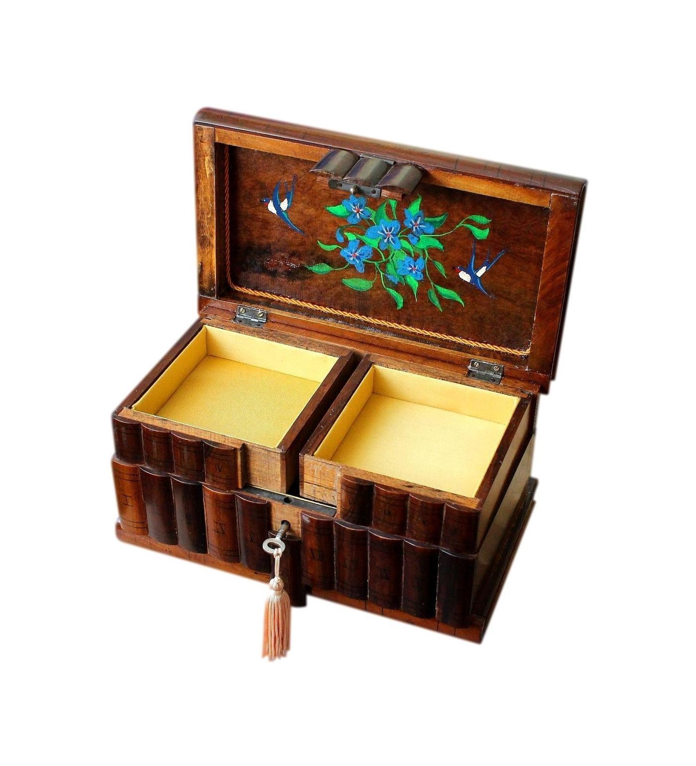 These beautiful puzzle boxes with their secret locks and compartments were designed to securely store valuable pieces of jewellery and private documents etc. Puzzle boxes are still made today but these modern versions are rarely as beautiful or well made.